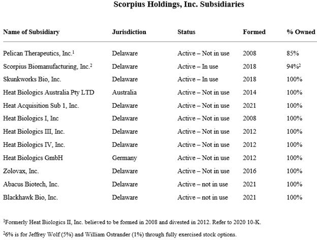 The following are the Disclosure Schedules (the “Disclosure Schedules”) referred to in that certain Security Agreement, dated as of October 6, 2025 (the “Agreement”), by and between Scorpius Holdings, Inc., a Delaware corporation (the “Company” or the “Debtor”), and 3i, LP, as a secured party, and the other secured parties signatory hereto their endorsees, transferees and assigns (collectively, the “Secured Parties”).